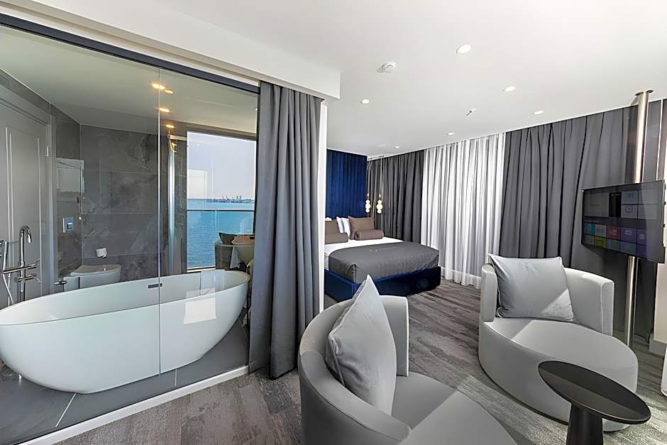 Die Unterkunftsoptionen reichen von Standard- und Zweibettzimmern mit Stadtblick bis hin zu Deluxe-Zimmern mit Meerblick und mehreren Präsidentensuiten. Beispiele sind: Standard, Twin (215 sqft); King-Zimmer, teilweise Meerblick (215 sqft); Standard, King (226 sqft); Standard, King und Single (269 sqft); Deluxe, Doppel, Meerblick (323 sqft); und Präsidentensuite mit Bosporusblick (700 sqft).